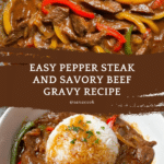 This Pepper Steak and Gravy recipe features tender sirloin steak strips sautéed with colorful bell peppers and onions, simmered in a flavorful beef broth gravy seasoned with soy sauce and aromatic spices. Perfect served over rice, this dish delivers a hearty and comforting meal with a rich, savory sauce that complements the juicy steak and crisp vegetables.