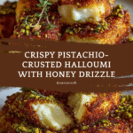 This Pistachio-Crusted Halloumi recipe features salty halloumi cheese slices coated in a crunchy pistachio crust, pan-fried to golden perfection and finished with a drizzle of sweet honey and aromatic fresh thyme. A delightful appetizer or light snack that combines contrasting textures and flavors for an irresistible bite.