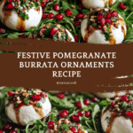 This Pomegranate & Burrata Christmas Ornaments Delight is a festive and elegant appetizer perfect for holiday gatherings. Creamy burrata is beautifully decorated with vibrant pomegranate seeds and crunchy pistachios, creating a dish that’s both visually stunning and delicious.