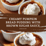 This Pumpkin Bread Pudding is a comforting autumn dessert featuring soft, sweet bread soaked in a spiced pumpkin custard and baked until golden. Topped with a rich brown sugar and butter sauce, it’s perfect for cozy gatherings or holiday brunches.