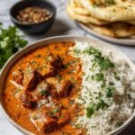 Pumpkin Butter Chicken is a flavorful fall-inspired twist on traditional butter chicken, incorporating creamy pumpkin puree and warm spices to create a rich, comforting dish. Tender chicken thighs are marinated in a spiced yogurt mixture, cooked to perfection, and simmered in a luscious pumpkin-tomato cream sauce. Served over basmati rice and garnished with fresh cilantro, this recipe offers a delicious way to celebrate seasonal flavors.