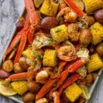 - Enjoy! Serve the Cajun seafood boil immediately for a communal meal where guests can grab directly from the baking sheet, or portion onto individual plates. Garnish with lemon wedges if desired. Relish the bold flavors and don’t forget to mop up every bit of the garlicky butter sauce. Bon appétit!