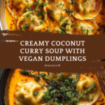 This quick coconut curry soup with dumplings is a comforting and flavorful dish perfect for busy nights. Combining creamy coconut milk, aromatic Thai curry, and tender vegan dumplings, it offers a delightful balance of spice and richness in every bowl.