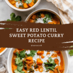 A hearty and flavorful Red Lentil Sweet Potato Curry made with aromatic spices, tender sweet potatoes, creamy coconut milk, and nutrient-packed red lentils. This comforting one-pot dish is easy to prepare and perfect for a wholesome vegetarian meal.