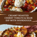 This Roasted Cherry Tomato & Creamy Bean Dip with Sourdough is a vibrant, flavorful dish perfect for gatherings or a cozy snack. The caramelized tomatoes paired with a smooth, cheesy bean dip create a delightful contrast that’s sure to impress.