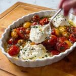 Keywords: roasted cherry tomato dip, creamy bean dip, vegan appetizer, sourdough dip, butter beans, vegan feta, roasted tomato recipe