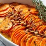- Arrange in Baking Dish: Lightly butter a baking dish to prevent sticking. Arrange the coated sweet potato slices in a spiral pattern to ensure even roasting. Sprinkle fresh thyme over the top along with additional Parmesan if desired for extra flavor.
