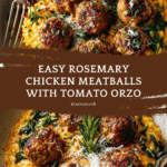 This Rosemary Chicken Meatballs with Tomato Orzo is a flavorful and hearty dish featuring tender ground chicken meatballs infused with fresh rosemary, simmered in a rich tomato sauce with orzo pasta. It’s an easy-to-make, comforting meal perfect for family dinners or meal prep, combining savory meatballs and a delicious, herbaceous tomato orzo.