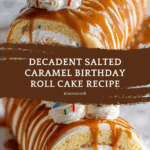 Salted Caramel Birthday Roll Cake is a luscious treat that combines the rich flavors of caramel and vanilla in a light, fluffy sponge. Perfect for celebrations, this cake roll is adorned with creamy caramel whipped cream and festive sprinkles for an irresistible dessert.