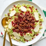 Keywords: Brussels sprout salad, candied pecans, pomegranate salad, healthy salad, holiday salad, shaved Brussels sprouts, autumn salad, vegetarian salad