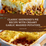 This Shepherd’s Pie recipe features a hearty meat filling made with ground beef or lamb combined with aromatic herbs and vegetables, topped with creamy garlic mashed potatoes, and baked to golden perfection. A comforting classic dish perfect for family dinners.