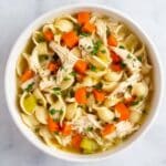 Store leftovers in an airtight container in the refrigerator for up to 3 days. Reheat gently on the stove or in the microwave, adding a splash of broth if the soup has thickened. You can also freeze the soup (without noodles) for up to 3 months; add fresh noodles when reheating for best texture.