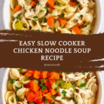 This Slow Cooker Chicken Noodle Soup is a comforting and hearty dish perfect for cozy days. Made with tender chicken, fresh vegetables, aromatic herbs, and egg noodles, it simmers slowly in flavorful chicken broth to create a deliciously warming meal with minimal effort.