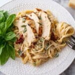 - Serve: Plate the coated fettuccini and slice the smoked chicken breasts on top. Drizzle any remaining sauce over the dish and garnish with 1 tablespoon of fresh chopped basil for a bright, herbal finish.