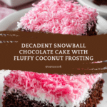 This Snowball Cake is a delightful chocolate treat topped with a fluffy marshmallow frosting and sweetened coconut tinted pink for a festive look. It’s moist, rich, and perfect for special occasions or any time you crave a charming, sweet dessert.