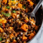A hearty and flavorful Southwestern Ground Beef Sweet Potato Skillet combining lean ground beef, tender sweet potatoes, black beans, and a blend of spices. This one-pan meal is perfect for a nutritious and comforting weeknight dinner, with an optional cheesy topping to enhance the rich southwestern flavors.