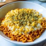 A delicious fusion dish combining spicy Korean instant noodles with a creamy, cheesy corn topping. This recipe brings together the fiery kick of Samyang carbo noodles and the comforting richness of Korean corn cheese for a satisfying meal that’s quick to prepare.