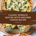 A classic and savory Spinach Quiche featuring a flaky single-crust pastry filled with sautéed shallots, fresh baby spinach, Gruyere cheese, and a rich custard of eggs and heavy cream. Perfect for brunch, lunch, or a light dinner, this quiche is baked to golden perfection and served warm.