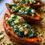 - Fill and Bake: Spoon the spinach and ricotta mixture into the cavity of each sweet potato half. Return them to the oven and bake for an additional 10 minutes to warm the filling through.