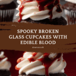 These Spooky Broken Glass Cupcakes are a show-stopping dessert perfect for Halloween or any eerie celebration. Featuring shards of shiny sugar glass and a dramatic edible blood drizzle, they combine a rich chocolate cupcake with smooth white chocolate buttercream and a luscious ganache filling.