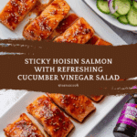 Keywords: Sticky Hoisin Salmon, Cucumber Vinegar Salad, Baked Salmon, Asian Salmon Recipe, Hoisin Glaze