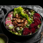 - Assemble and Serve: Fill your salad bowls with your chosen salad greens and add-ons, including pickled beetroot if desired. Top with warm chicken and onions. Scatter toasted pine nuts over the top. Drizzle with extra olive oil and serve generously with the green yoghurt dressing.