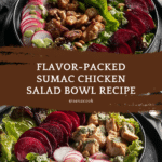 This Sumac Chicken Salad Bowl combines tender, spiced chicken with fresh salad greens and a vibrant green yoghurt dressing. It’s a flavorful, colorful dish perfect for a light lunch or a satisfying dinner. Toasted pine nuts add a delightful crunch, making every bite a treat.