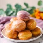 Store any leftover donuts in an airtight container at room temperature for up to 2 days. For longer storage, keep them in the refrigerator for up to 4 days. Reheat gently in an air fryer or oven to maintain their texture. The glaze is best enjoyed fresh but can be refreshed with a thin spread if it hardens.