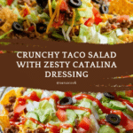 Taco Salad with Catalina Dressing is a vibrant and satisfying dish that combines seasoned ground beef, fresh vegetables, and crunchy Doritos for a fun twist. Topped with tangy Catalina dressing, it’s perfect for a quick lunch or casual dinner that everyone will love.
