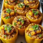 Delicious Teriyaki Pineapple Chicken and Rice Stuffed Peppers combine sweet, savory, and tangy flavors in a hearty baked dish perfect for a wholesome family meal. Tender shredded chicken mixed with pineapple, teriyaki sauce, and rice is stuffed inside roasted bell peppers, then baked to perfection with an optional cheesy topping.