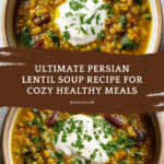 Keywords: Persian soup, lentil soup, healthy soup recipe, vegetarian soup, easy dinner, comforting soup, traditional Persian recipe