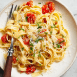 This Tomato Garlic Butter Pasta is a flavorful, quick, and easy dish combining the richness of butter and garlic with the sweetness of cherry tomatoes and a touch of heat from chili flakes. Enhanced by soy and oyster sauces for a subtle umami depth, it’s tossed with perfectly cooked pasta and finished with parmesan, spring onions, and a drizzle of olive oil for an irresistible, glossy finish.