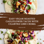 Keywords: Vegan tacos, roasted cauliflower tacos, cilantro lime crema, plant-based tacos, gluten free tacos, healthy vegan meal