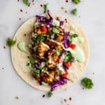 These Vegan Roasted Cauliflower Tacos offer a flavorful and healthy plant-based meal featuring crispy roasted cauliflower florets seasoned with a blend of chili powder, paprika, cumin, and garlic. Topped with a refreshing cilantro lime cabbage slaw and creamy cilantro lime cashew crema, these tacos are vibrant and satisfying. Served with tortillas, black beans, avocado, pico de gallo, and cilantro lime rice, they make a perfect vegan taco night option.