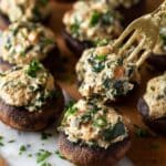 Delicious and easy-to-make Vegetarian Stuffed Mushrooms featuring a flavorful filling of sautéed mushroom stems, garlic, spinach, cream cheese, and sharp cheddar, topped with optional crispy panko breadcrumbs and baked to perfection. Perfect as an appetizer or side dish, these stuffed mushrooms are savory, satisfying, and vegetarian-friendly.