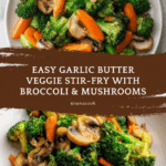 A vibrant and flavorful Garlic Butter Broccoli, Carrot & Mushroom Stir-Fry that combines fresh vegetables sautéed in rich garlic butter and a savory soy-based sauce, perfect for a quick and nutritious side dish or light meal.