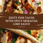 These Zesty Fish Tacos with Spicy Sriracha Lime Sauce offer a vibrant and flavorful twist on a classic favorite. Tender cod fillets are marinated in a zesty blend of lime, chili powder, and cumin, then pan-fried to perfection. Paired with a creamy, spicy sriracha lime sauce and topped with crisp cabbage, fresh onion, cilantro, and optional Cotija cheese and jalapeño, these tacos deliver a perfect balance of spice, tang, and crunch for a deliciously satisfying meal.